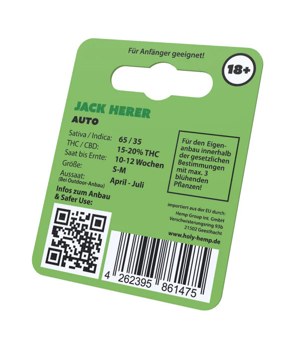 Anbau solltest du sie idealerweise von April bis Juli aussäen. Unsere Jack Herer wird zur Ernte bis zu 150 Gramm pro Pflanze abwerfen. Indoor können es bei idealen